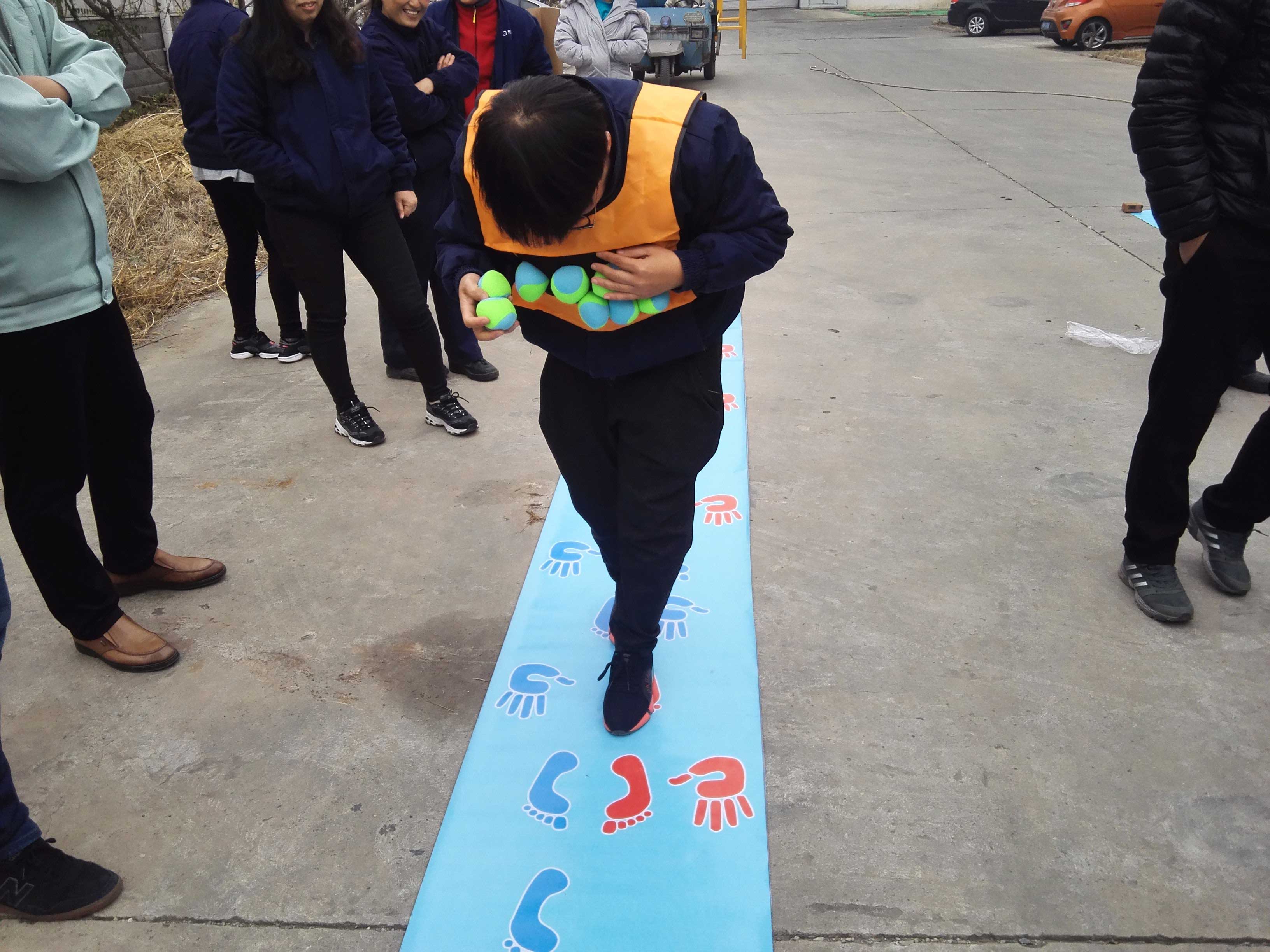 第五项手脚并用比赛,4人参赛,分男女两队,不出错误最先到达终点的人员获胜。猛一看好像这项比赛最没有技术含量,但却是最考验自身协调性的比赛。短短的赛道难住了所有参赛选手,一会儿手出界了,一会儿脚不知道放哪了,一会儿又把球丢了,简直急坏了观赛的同事,每个参赛选手旁边都出现了好几个“军师”,大家希望能够帮到参赛者。
