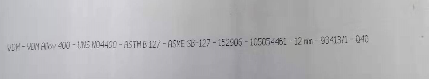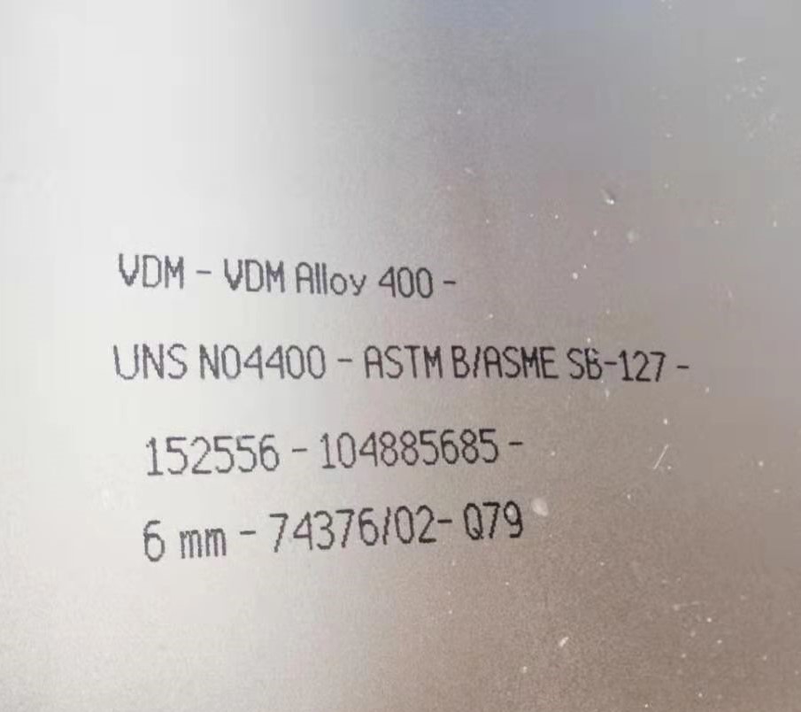 碳(C)≤0.30,镍(Ni) ≥ 63.0,硅(Si)≤0.5,硫(S)≤0.024,铁(Fe) ≤2.5,锰(Al) ≤2.0,铜(Cu) 28.0 ~34.0